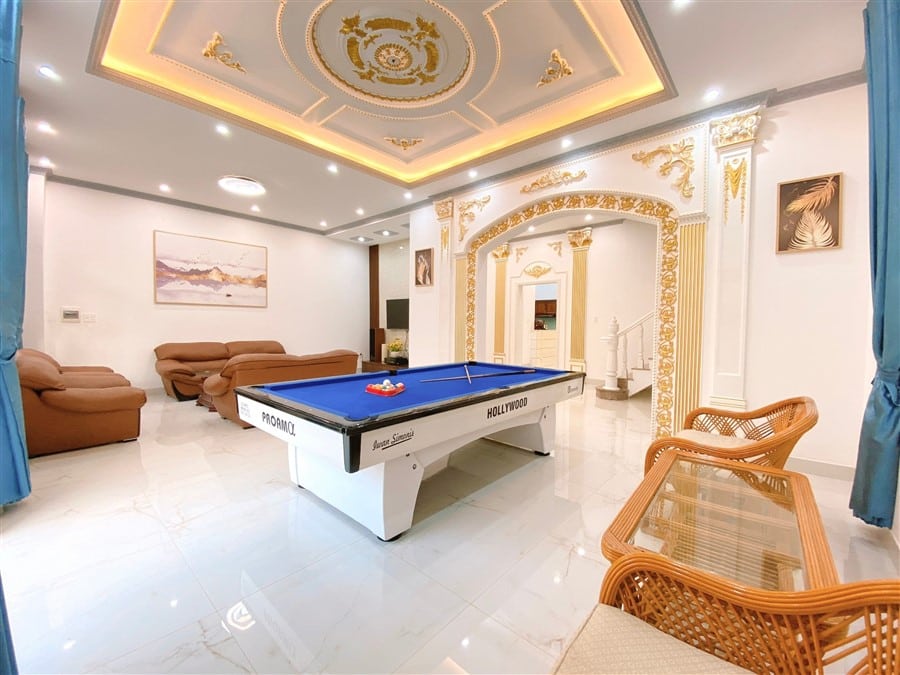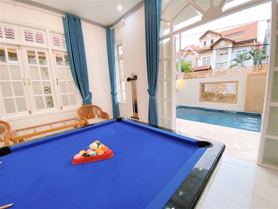 Mô Tả: 🏘️ Tiện ích chất lượng: 🎤: loa karaoke 🏊 Hồ bơi sục 50m2 🎱 Bàn Bida lỗ lớn trang bị đầy đủ dụng cụ 🧑🍳 Không gian bếp rộng rãi, đầy đủ tiện nghi, gia vị nấu nướng, nướng BBQ tại sân vườn và sân thượng. 🏵️ Nhân viên tận tình, phục vụ mọi lúc, luôn hỗ trợ khách hàng giúp mọi người có một kỳ nghỉ trọn vẹn.