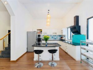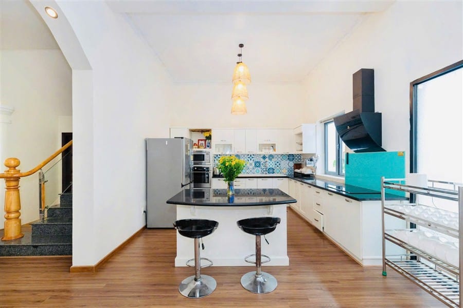 Phòng bếp rộng rãi, đầy đủ đồ dùng nấu bếp: Lò vi sóng, nồi cơm điện, tủ lạnh,… 🍽🍻