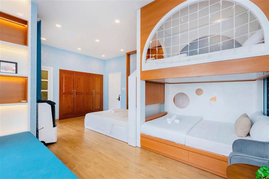 1 Phòng VIP Master 80m2, 1 Phòng tập thể 4 giường