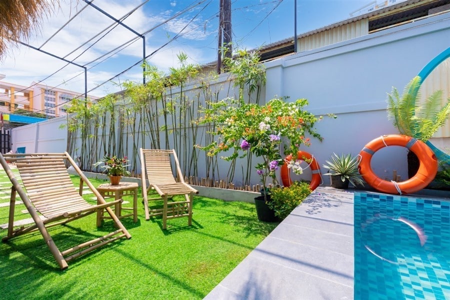 Mô Tả: Hồ Bơi 50m2 , có hồ trẻ E. karaoke, massage, BBQ ,sân đậu 4 ôtô trong nhà.
