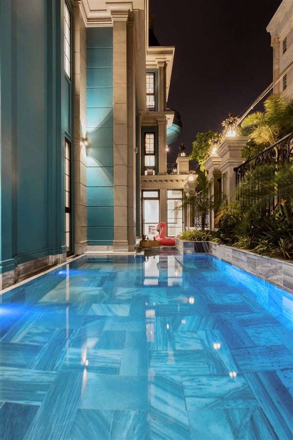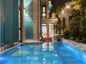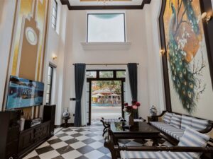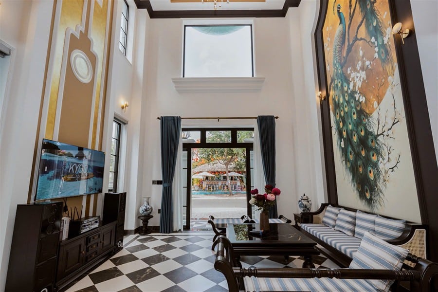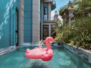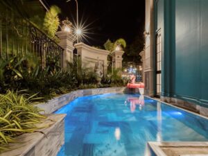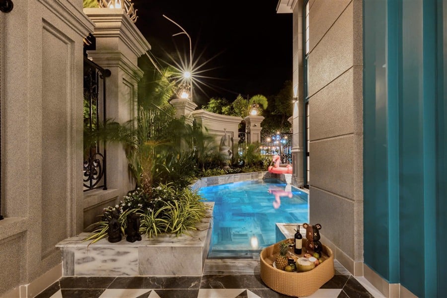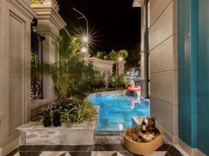 Mô Tả: “Hồ bơi 30m2. Dàn karaoke. Bida. Garage xe 7 chỗ. Xe lớn đậu sát nhà.