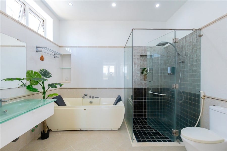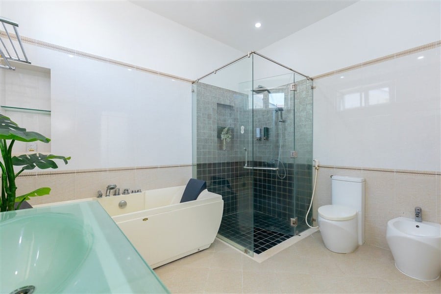 🛁 7 WC, tiện nghi đầy đủ: khăn, dầu gội, máy sấy, máy giặt