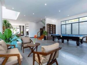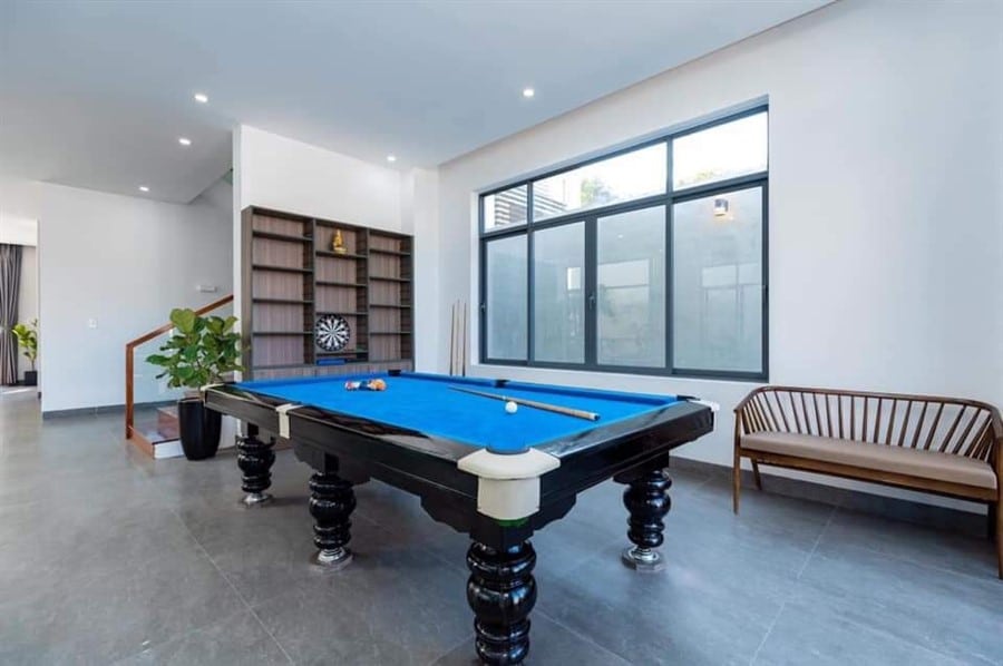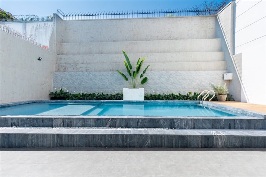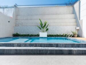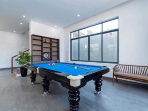 Tiện ích / Mô Tả: Hồ bơi : 50m2, bồn sục massage ngoài trời, hồ trẻ em.phòng Karaoke cách âm, bida, ghế massage, phòng xông hơi đá muối. Sân vườn 4 ô tô , bộ cầu tuột trẻ em. nội thất cao cấp.