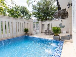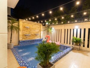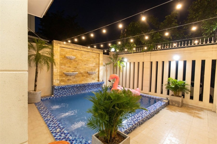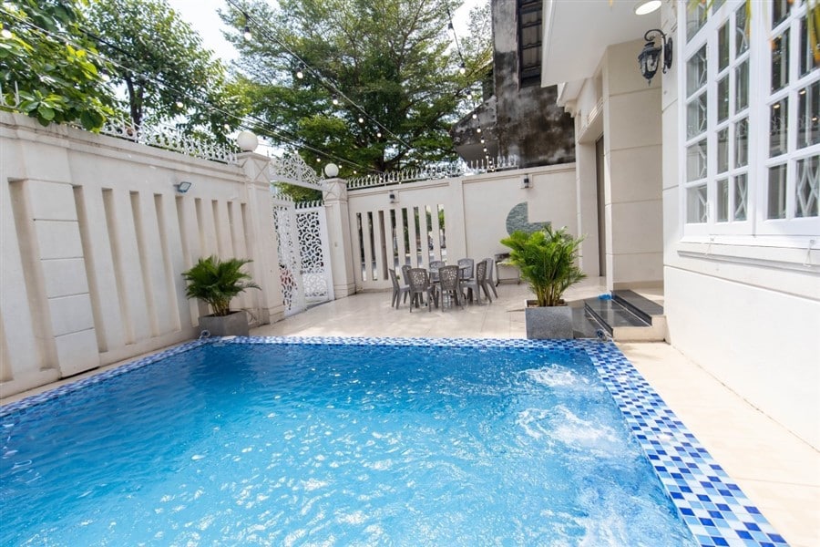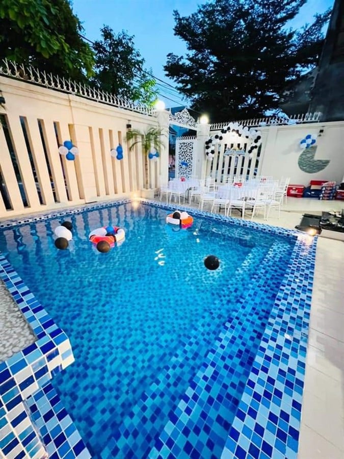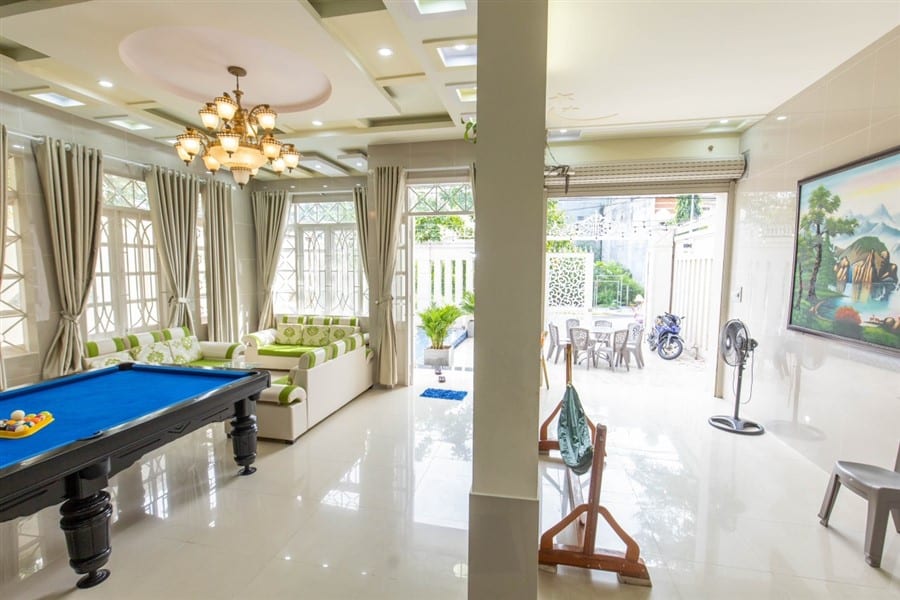 Tiện ích / Mô Tả: sân rộng. hồ bơi 30m2 loa karaoke + bida + ghế matxa