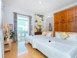 Số Phòng Ngủ: 4 phòng ngủ (3 phòng trên lầu, 1 phòng tầng trệt có giường)