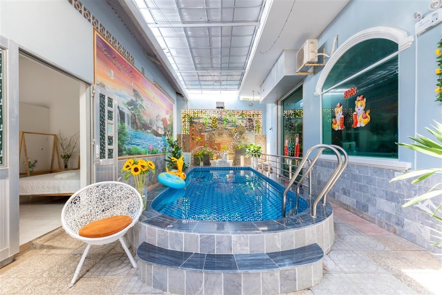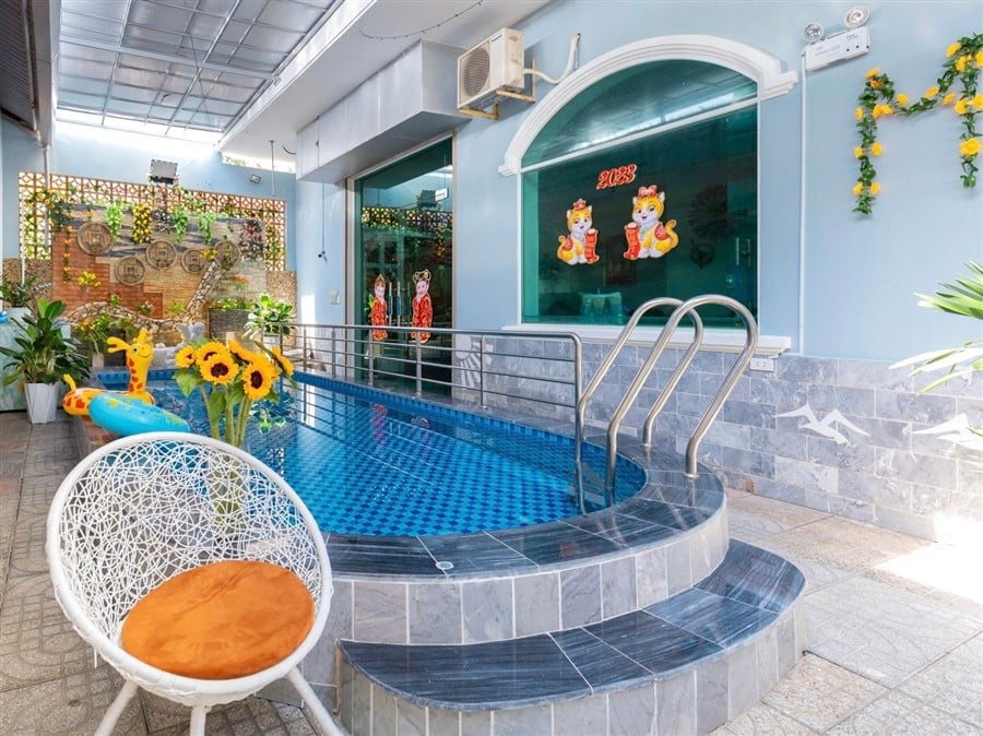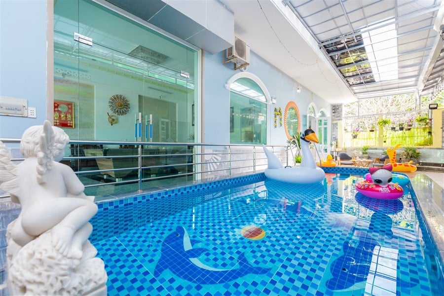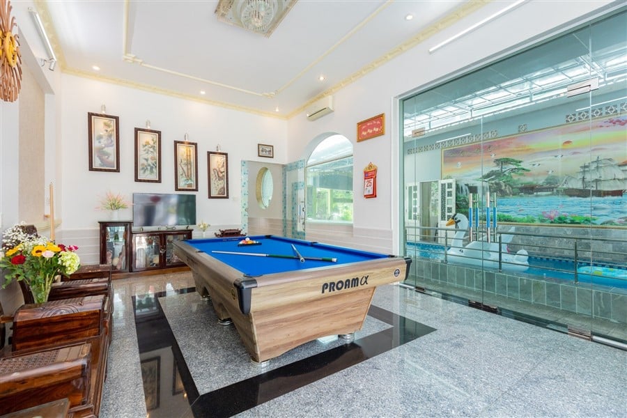 Mô Tả: Hồ bơi 30m2, Phòng Karaoke 2 mic, nội thất mới, đầy đủ bếp BBQ, 3 bộ bàn ghế 30 ng, xe 45 chỗ đậu trước nhà, 3 xe 7 chỗ đậu trong sân nhà