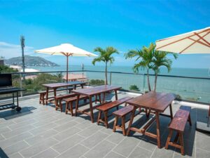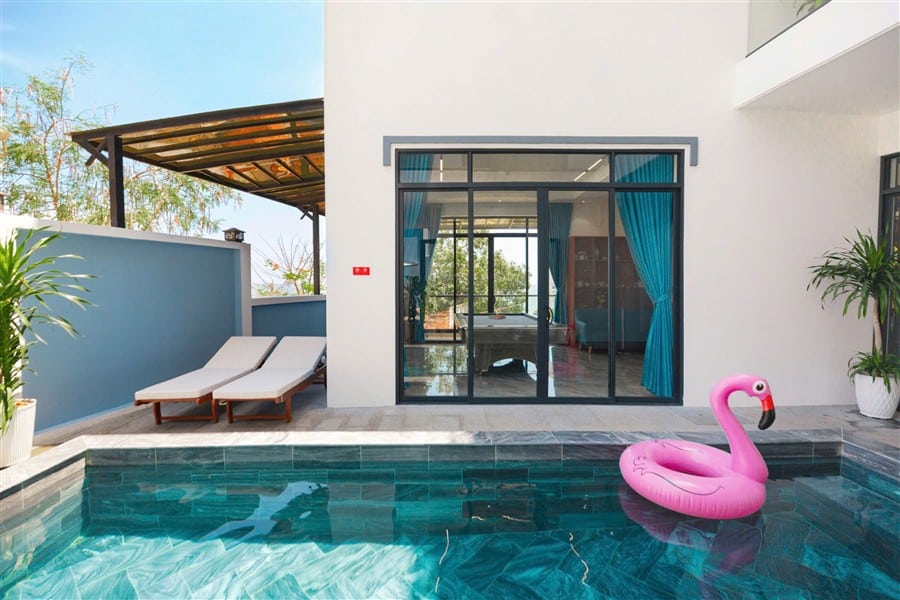Mô Tả: Hồ bơi 7mx3m. Nhà có thang máy. Bàn bida, loa hát karaoke. Sân thượng lớn view biển BBQ cực chill. Chỗ đậu xe thoải mái.