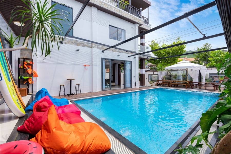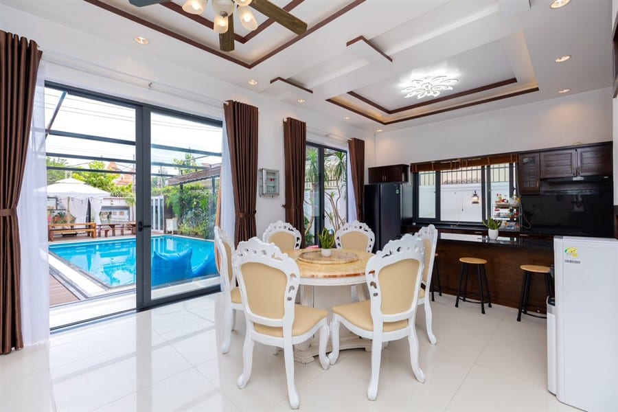 ⛔ Phụ thu vệ sinh rửa chén đĩa,khu vực tổ chức ăn uống tiệc tùng:500k/ khu vực sàn gỗ hồ bơi, 500k/ bếp, 500k/sân thượng, nếu khách tự dọn sẽ không tính phụ thu”