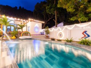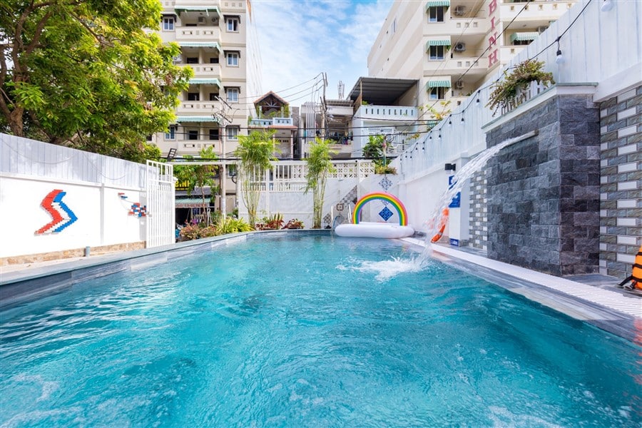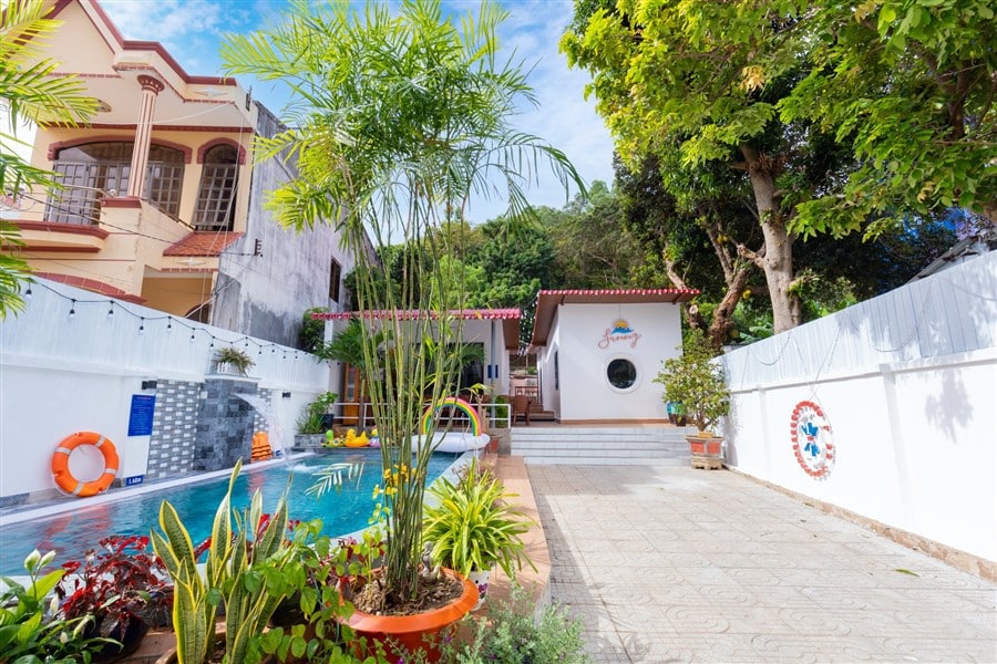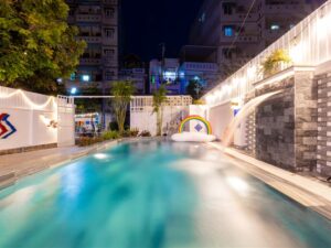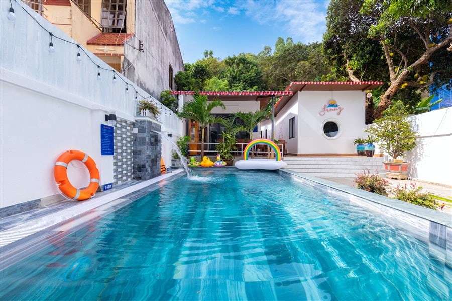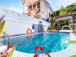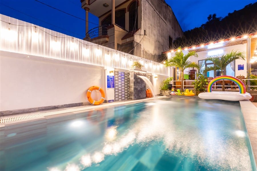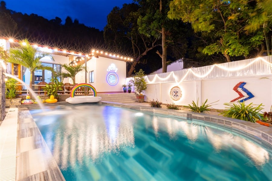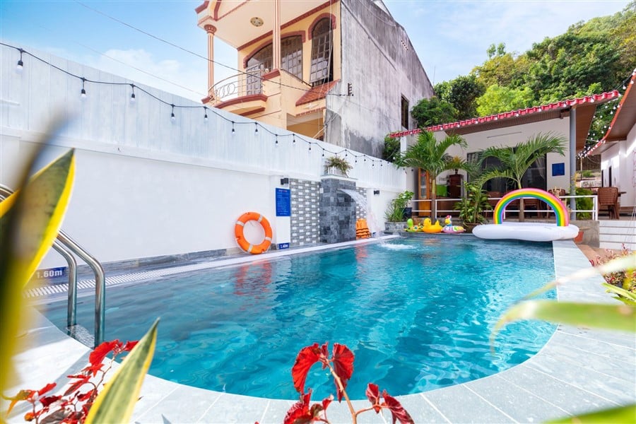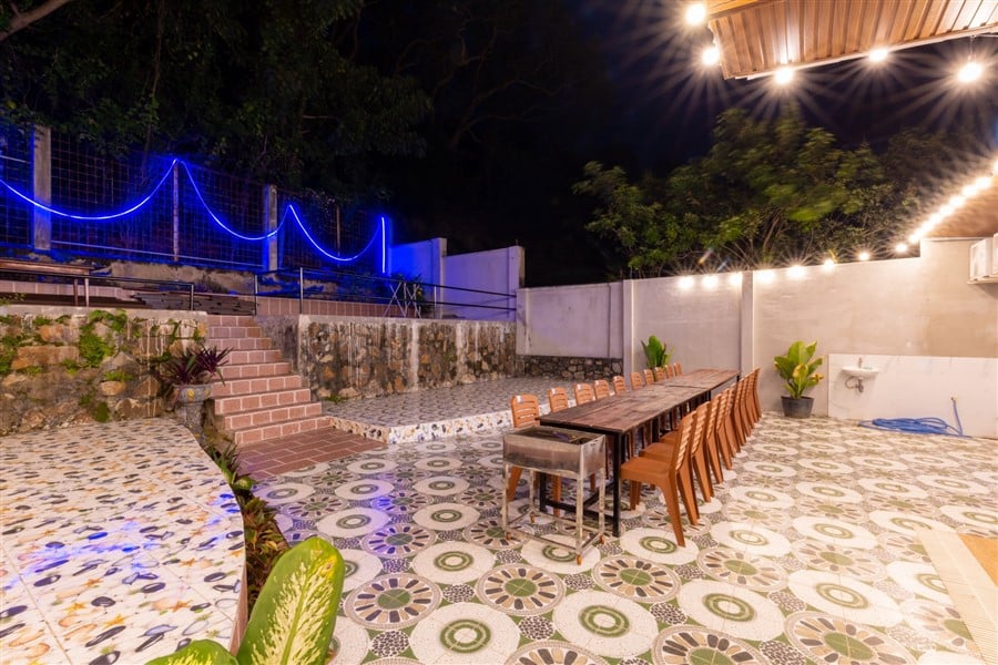 Mô Tả: “🌸 2 sân BBQ, view núi 🏊🏻♀️ Hồ bơi lớn 50m2 (1m-1m6)