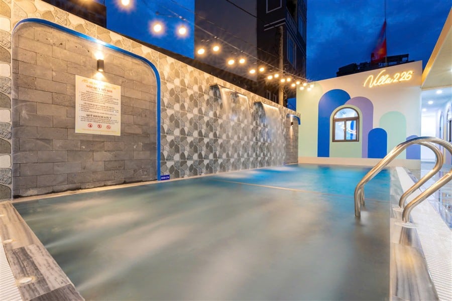 🌊 Hồ bơi 50m2 có sục massage jacuzzi, thác nước đôi.