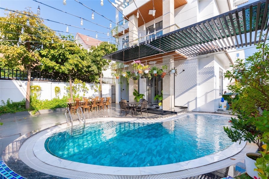 Mô Tả: Hồ bơi: 40 m2; karaoke phòng khách; Có sân tổ chức tiệc BBQ; Đồ dùng bếp; chỗ đậu xe ô tô . Sân vườn rộng rãi, máy lạnh phòng khách,xông hơi,bida