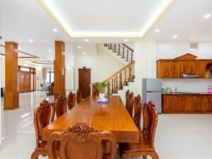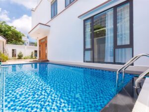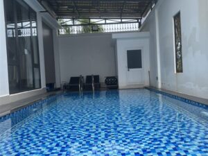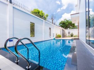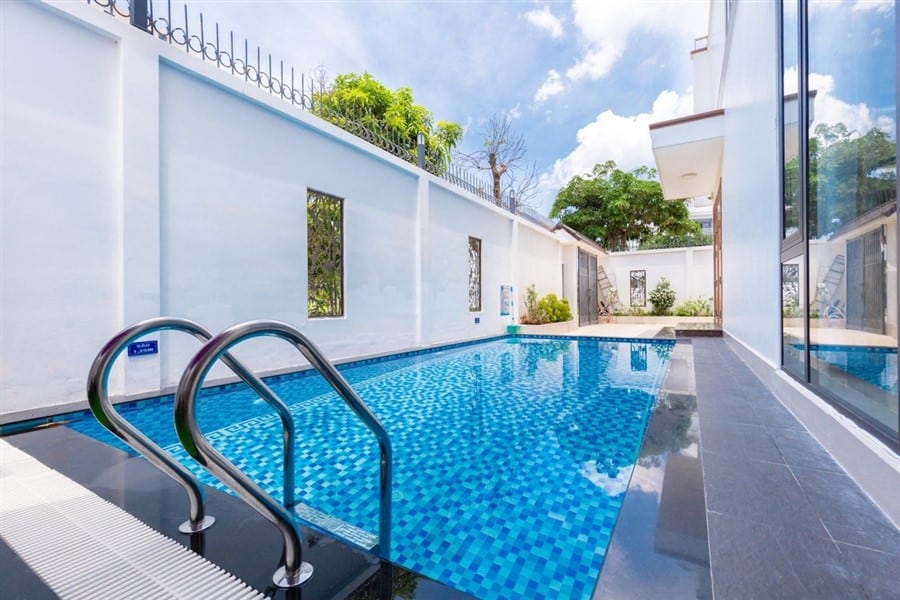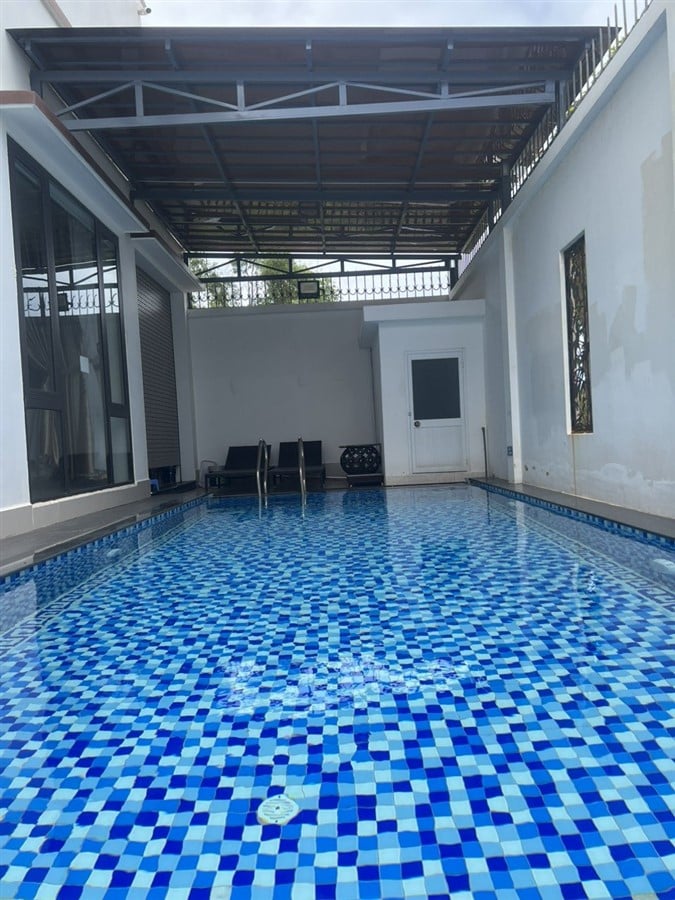 Mô Tả: Hồ bơi 45m2 sâu 1m50, đậu xe trong sân 3 xe 7 chỗ, vỉa hè đậu được 2 xe 45 chỗ, Free karaoke, Bida, BBQ
