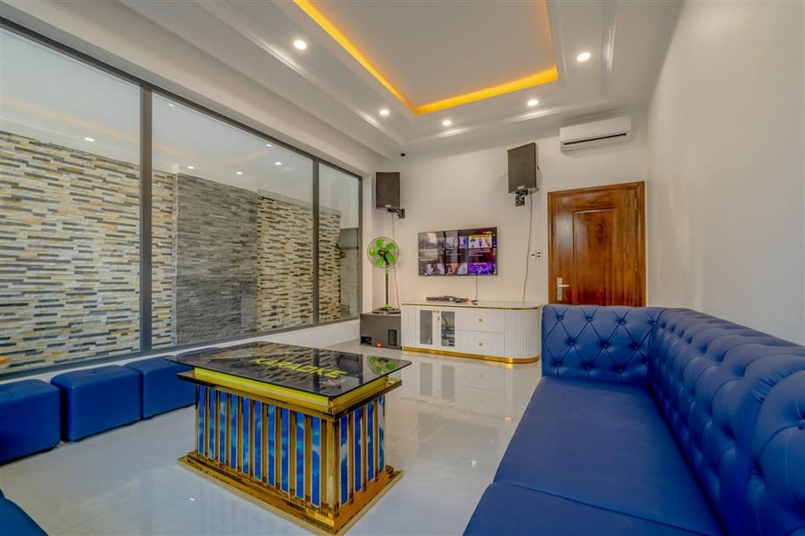 Tiện ích / Mô Tả: hồ bơi 70m2, PHÒNG KAra, sân Tiệc 10 mâm, xe đỗ sân 3 cái, , máy lạnh phòng khách