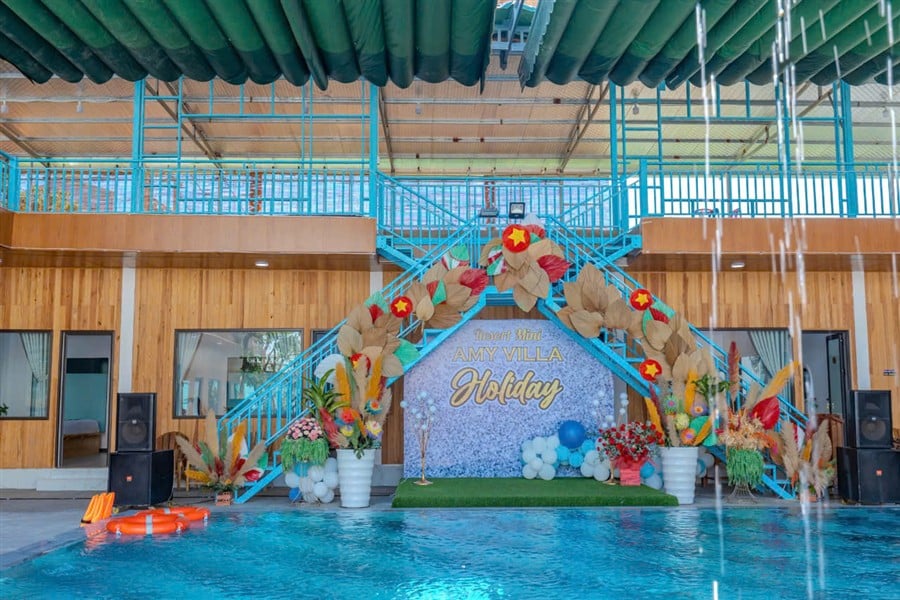Mô Tả: hồ bơi 150m2, đốt lửa trại, kara, bida